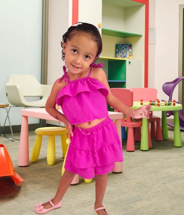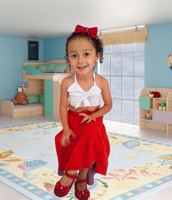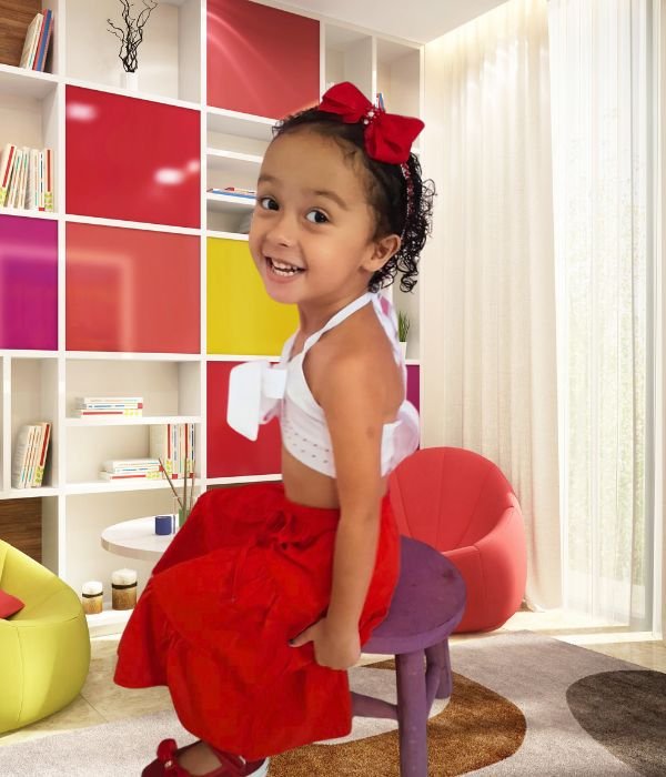 Nas horas vagas, adora dançar e brincar no parque infantil, aproveitando ao máximo sua infância cheia de alegria.