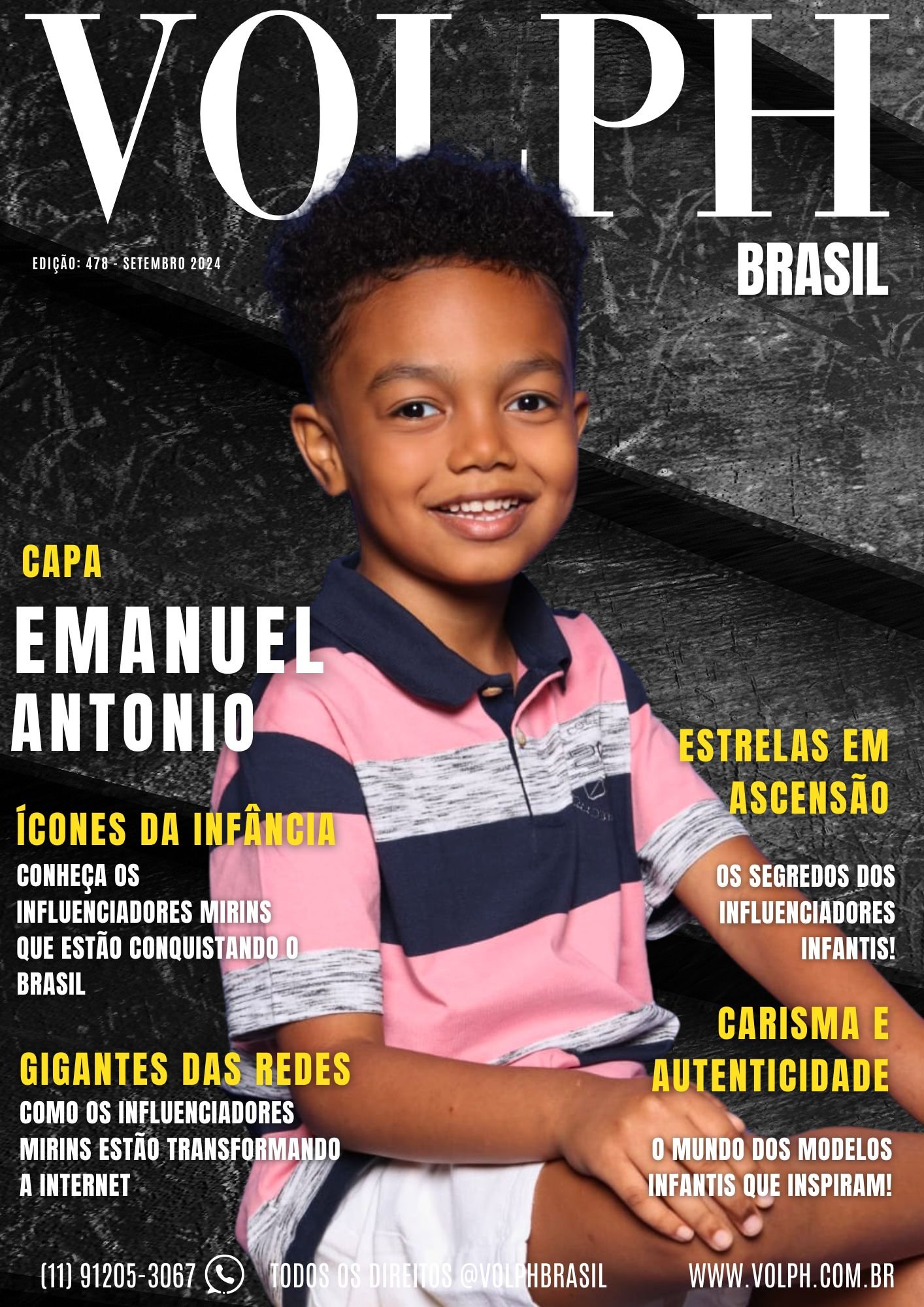 Com talento, carisma e o apoio de sua família, Emanuel está trilhando um caminho de sucesso no universo da moda e publicidade infantil. A Revista Volph Brasil se orgulha em registrar o início de sua jornada e acompanhar de perto o crescimento desse jovem que, com certeza, continuará brilhando nas passarelas e nas redes sociais.